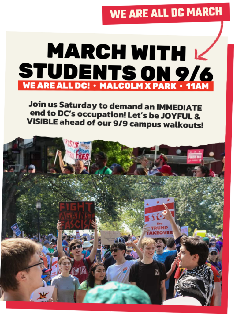 Sep 6, 2025 — We turned out over 150 students for the We Are All DC march to reject ICE, the National Guard, and the occupation of DC!