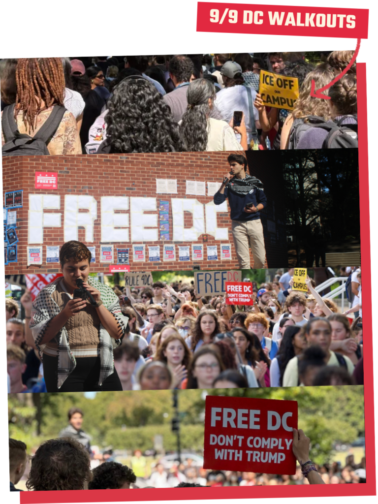 Sep 9, 2025 — With Free DC & Sunrise, we got 2,000+ students and faculty members to walk out of class at American, Georgetown, George Washington, and Howard Universities to demand an end to Trump’s occupation of DC!