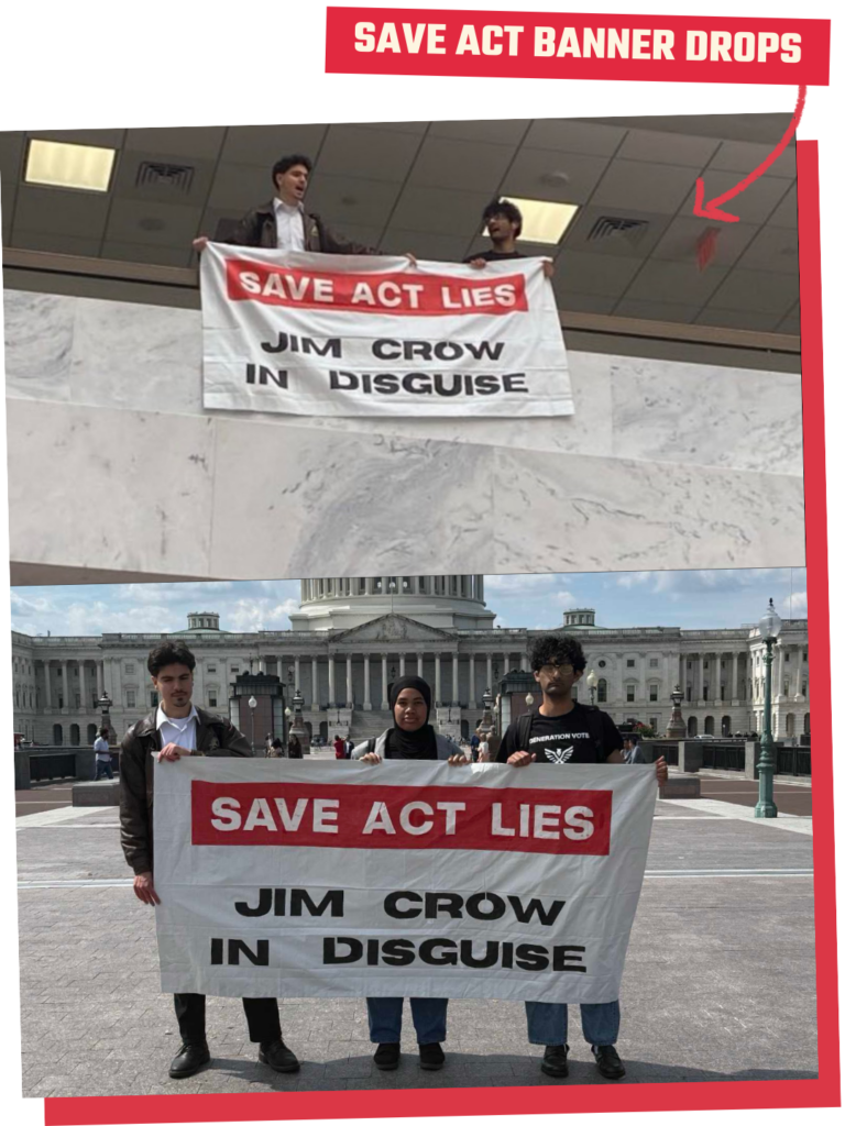 Sep 15, 2025 — With GenVote, we dropped banners across the country to stop the Senate from passing the SAVE Act (and almost got arrested in DC).