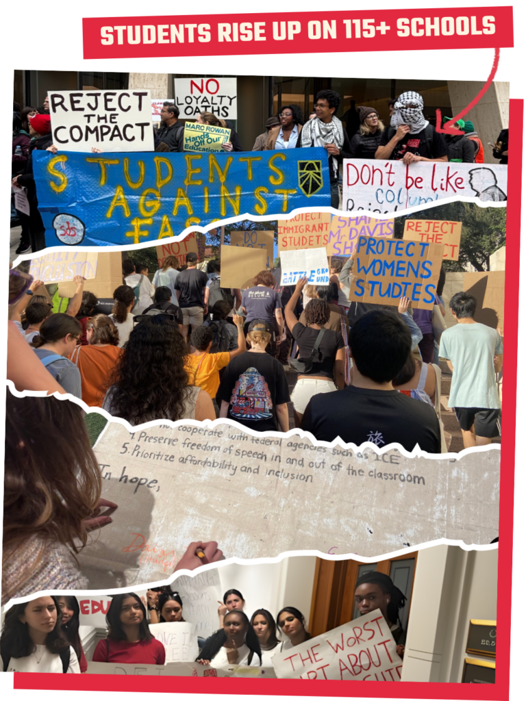 Nov 7, 2025 — Thousands of students & workers across 115+ campuses took action as part of Students Rise Up to defeat Trump’s authoritarian campus compact and win affordability, security & freedom for our generation.