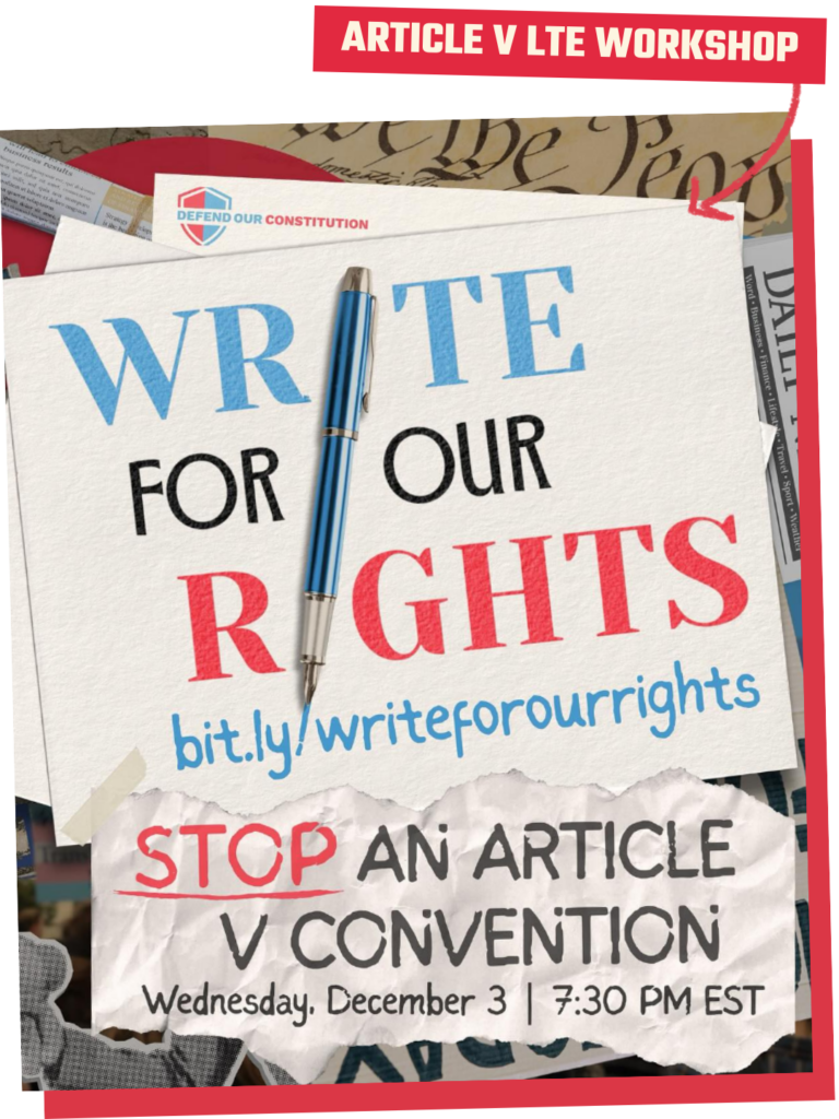 Dec 3, 2025 — We organized a workshop to expose billionaires & corporations trying to take away our constitutional rights and increase their power through an Article V Convention. Dozens of attendees joined and took action!