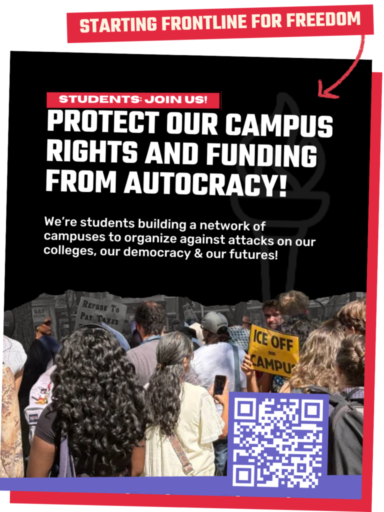 Aug 5, 2025 — During the last Democracy in Action training, we launched Frontline for Freedom, a national anti-authoritarian network to resist attacks on student rights, college funding, and our democracy.